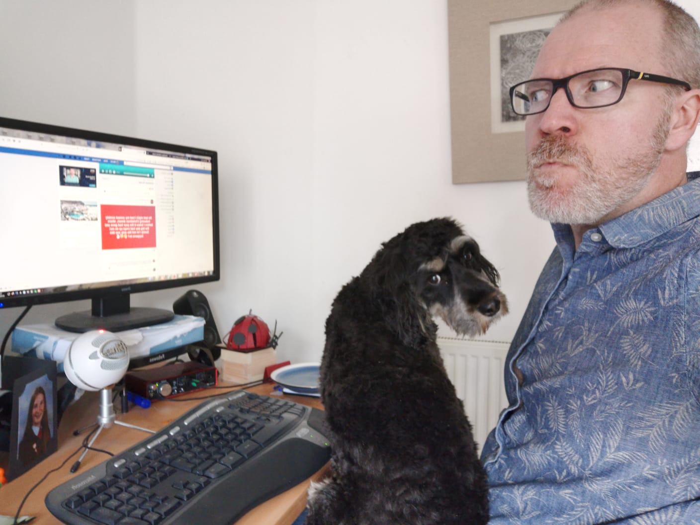 He is super clever and never ceases to amaze me. He knows the difference just by ear whether I’m loading or unloading the dishwasher. He is not interested when unloading as there is no lovely food remnants to lick! He has selective hearing and will only respond to his name at his convenience, just like a cat (unless cooked chicken is involved).